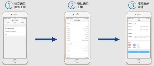 我们收到客户售后服务需求,建立售后服务工单,并派发至相应售后工程师。售后工程师确认工单并填写客户售后服务需求详细信息。根据售后工单填写外出申请单,并提交至上一 级审批。售后工程师上门检修,并进行实时位置打卡签到。 将维修过程拍照上传至服务进度,便于实时追踪服务进度。 维修完成后,客户对本次服务进行评价,售后服务完成。如下图: